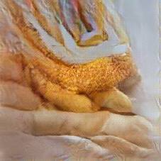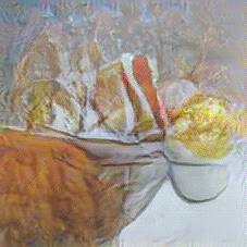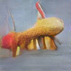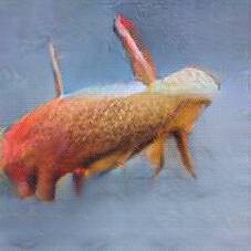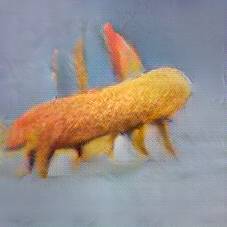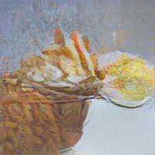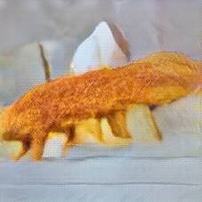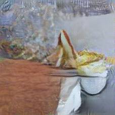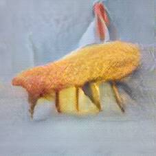 Below are 40 iterations of showing how the neural model learned to represent this class. The visualizations below show the maximally activated representations of what makes Fish and Chips look like Fish and Chips