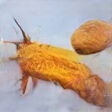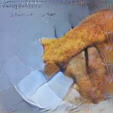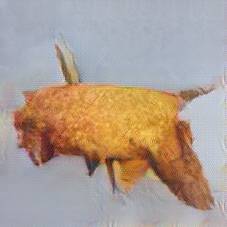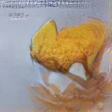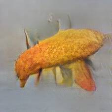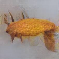 Below are 40 iterations of showing how the neural model learned to represent this class. The visualizations below show the maximally activated representations of what makes Fish and Chips look like Fish and Chips