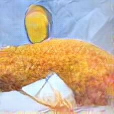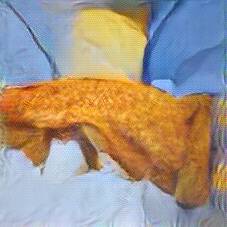 Below are 40 iterations of showing how the neural model learned to represent this class. The visualizations below show the maximally activated representations of what makes Fish and Chips look like Fish and Chips