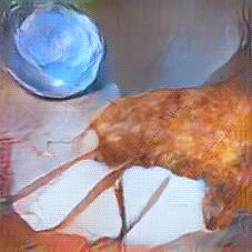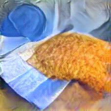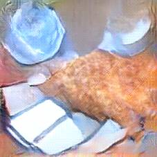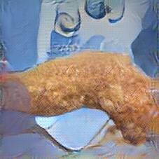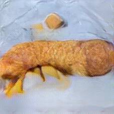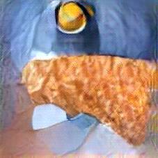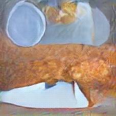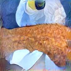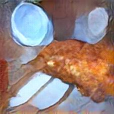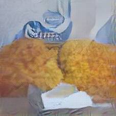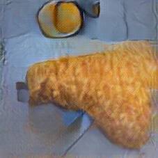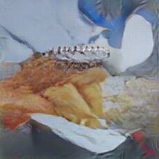 Below are 40 iterations of showing how the neural model learned to represent this class. The visualizations below show the maximally activated representations of what makes Fish and Chips look like Fish and Chips