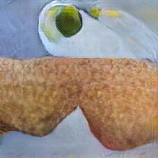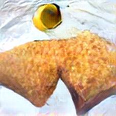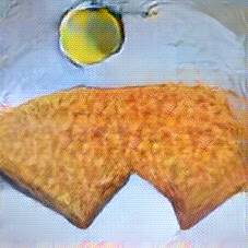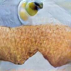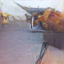 Below are 40 iterations of showing how the neural model learned to represent this class. The visualizations below show the maximally activated representations of what makes Fish and Chips look like Fish and Chips