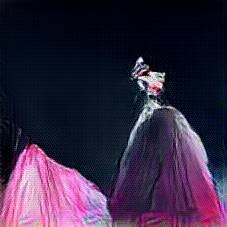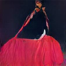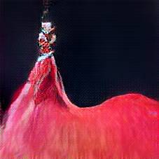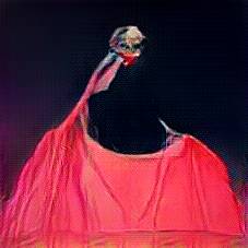 Below are 40 iterations of showing how the neural model learned to represent this class. The visualizations below show the maximally activated representations of what makes Flamenco Dress look like Flamenco Dress