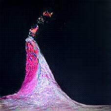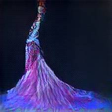 Below are 40 iterations of showing how the neural model learned to represent this class. The visualizations below show the maximally activated representations of what makes Flamenco Dress look like Flamenco Dress