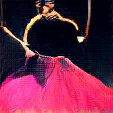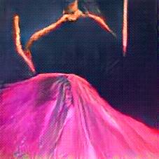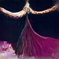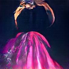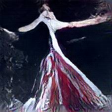 Below are 40 iterations of showing how the neural model learned to represent this class. The visualizations below show the maximally activated representations of what makes Flamenco Dress look like Flamenco Dress