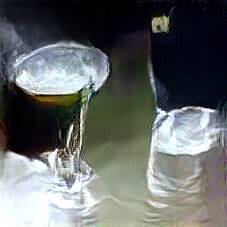 Below are 40 iterations of showing how the neural model learned to represent this class. The visualizations below show the maximally activated representations of what makes Vodka look like Vodka