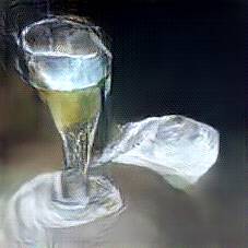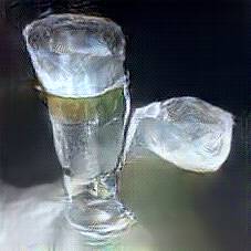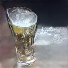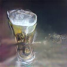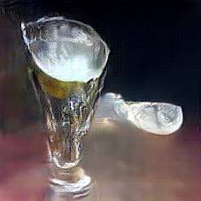 Below are 40 iterations of showing how the neural model learned to represent this class. The visualizations below show the maximally activated representations of what makes Vodka look like Vodka