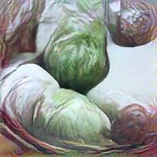 This class was learned from 93 images of Gołąbki (cabbage rolls). The visualizations below show the maximally activated representations of what makes Gołąbki (cabbage rolls) look like Gołąbki (cabbage rolls). Each image begins with a randomly-seeded noise image, which leads to a slightly different class representation. Below are 12 activations created from 12 random noise images.