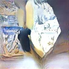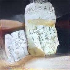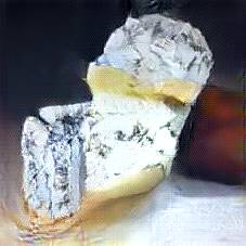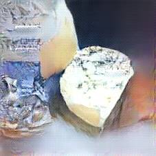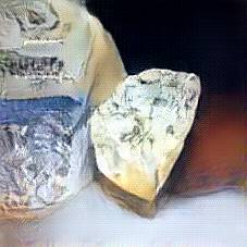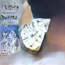 Below are 40 iterations of showing how the neural model learned to represent this class. The visualizations below show the maximally activated representations of what makes Gorgonzola look like Gorgonzola