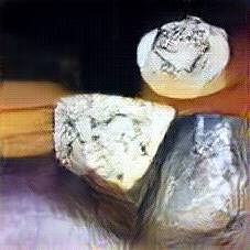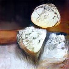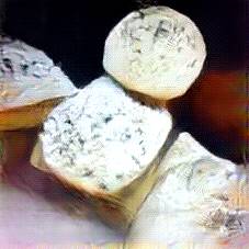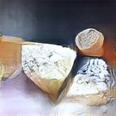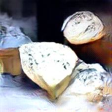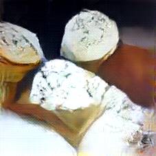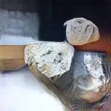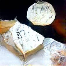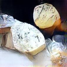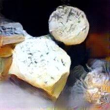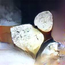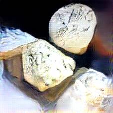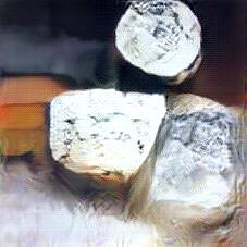 Below are 40 iterations of showing how the neural model learned to represent this class. The visualizations below show the maximally activated representations of what makes Gorgonzola look like Gorgonzola