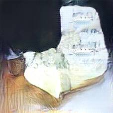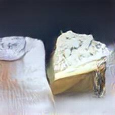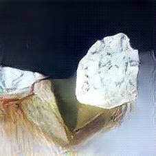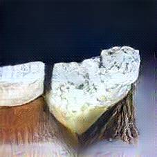 Below are 40 iterations of showing how the neural model learned to represent this class. The visualizations below show the maximally activated representations of what makes Gorgonzola look like Gorgonzola