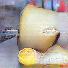 Below are 40 iterations of showing how the neural model learned to represent this class. The visualizations below show the maximally activated representations of what makes Gouda look like Gouda