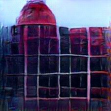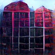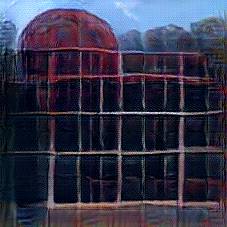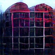 Below are 40 iterations of showing how the neural model learned to represent this class. The visualizations below show the maximally activated representations of what makes Grachtenpand look like Grachtenpand