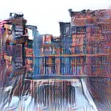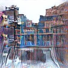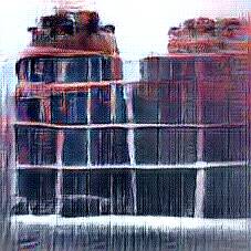 Below are 40 iterations of showing how the neural model learned to represent this class. The visualizations below show the maximally activated representations of what makes Grachtenpand look like Grachtenpand