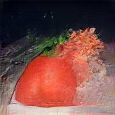 This class was learned from 142 images of Gravlax. The visualizations below show the maximally activated representations of what makes Gravlax look like Gravlax. Each image begins with a randomly-seeded noise image, which leads to a slightly different class representation. Below are 12 activations created from 12 random noise images.