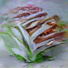 Below are 40 iterations of showing how the neural model learned to represent this class. The visualizations below show the maximally activated representations of what makes Halloumi look like Halloumi