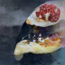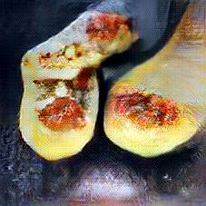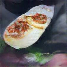 This class was learned from 131 images of Halloumi. The visualizations below show the maximally activated representations of what makes Halloumi look like Halloumi. Each image begins with a randomly-seeded noise image, which leads to a slightly different class representation. Below are 12 activations created from 12 random noise images.