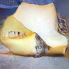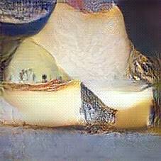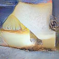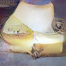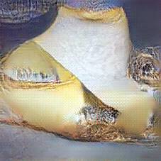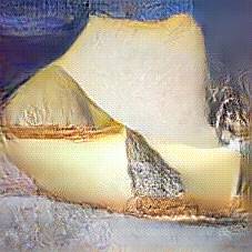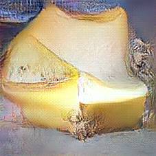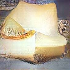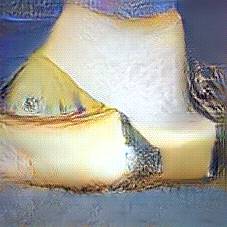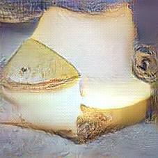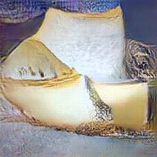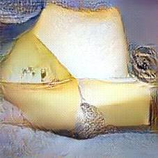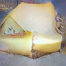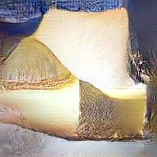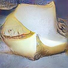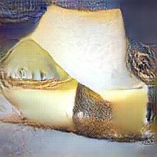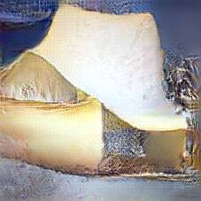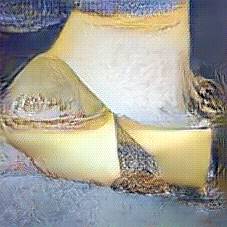Below are 40 iterations of showing how the neural model learned to represent this class. The visualizations below show the maximally activated representations of what makes Gruyere look like Gruyere
