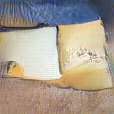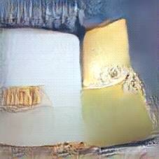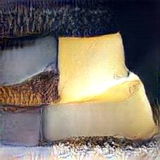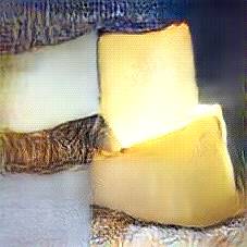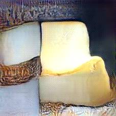 Below are 40 iterations of showing how the neural model learned to represent this class. The visualizations below show the maximally activated representations of what makes Gruyere look like Gruyere