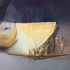 Below are 40 iterations of showing how the neural model learned to represent this class. The visualizations below show the maximally activated representations of what makes Gruyere look like Gruyere