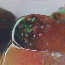 Below are 40 iterations of showing how the neural model learned to represent this class. The visualizations below show the maximally activated representations of what makes Gulash look like Gulash