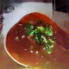 Below are 40 iterations of showing how the neural model learned to represent this class. The visualizations below show the maximally activated representations of what makes Gulash look like Gulash