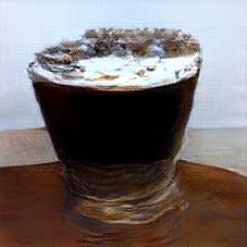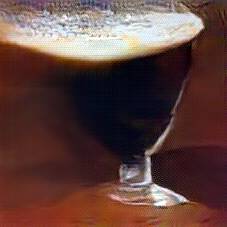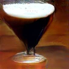 Below are 40 iterations of showing how the neural model learned to represent this class. The visualizations below show the maximally activated representations of what makes Irish Coffee look like Irish Coffee