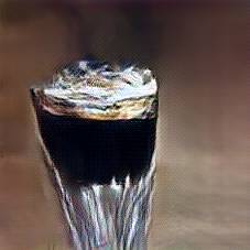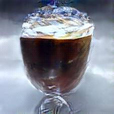 Below are 40 iterations of showing how the neural model learned to represent this class. The visualizations below show the maximally activated representations of what makes Irish Coffee look like Irish Coffee