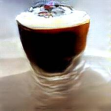 Below are 40 iterations of showing how the neural model learned to represent this class. The visualizations below show the maximally activated representations of what makes Irish Coffee look like Irish Coffee
