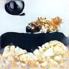 Below are 40 iterations of showing how the neural model learned to represent this class. The visualizations below show the maximally activated representations of what makes Kaiserschmarrn look like Kaiserschmarrn