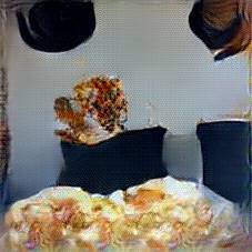 Below are 40 iterations of showing how the neural model learned to represent this class. The visualizations below show the maximally activated representations of what makes Kaiserschmarrn look like Kaiserschmarrn