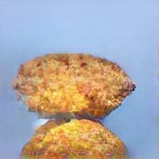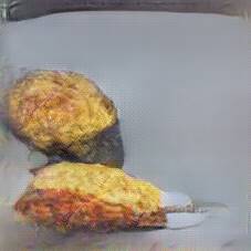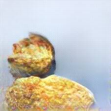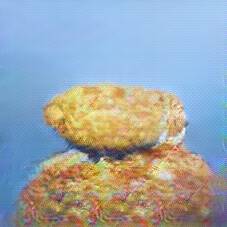 Below are 40 iterations of showing how the neural model learned to represent this class. The visualizations below show the maximally activated representations of what makes Kartoffelpuffer look like Kartoffelpuffer