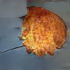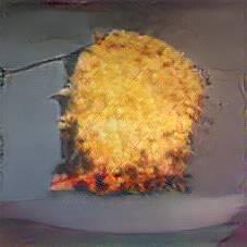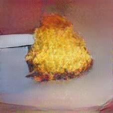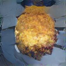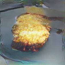 Below are 40 iterations of showing how the neural model learned to represent this class. The visualizations below show the maximally activated representations of what makes Kartoffelpuffer look like Kartoffelpuffer