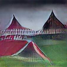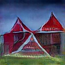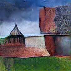 Below are 40 iterations of showing how the neural model learned to represent this class. The visualizations below show the maximally activated representations of what makes Kaunas Castle look like Kaunas Castle
