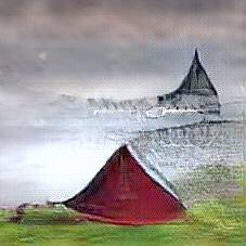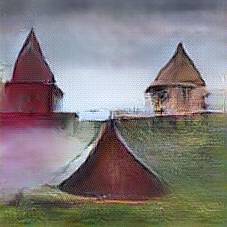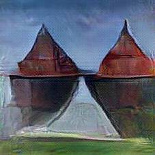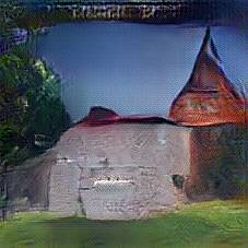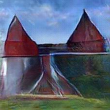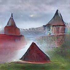 Below are 40 iterations of showing how the neural model learned to represent this class. The visualizations below show the maximally activated representations of what makes Kaunas Castle look like Kaunas Castle