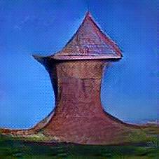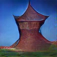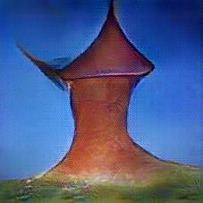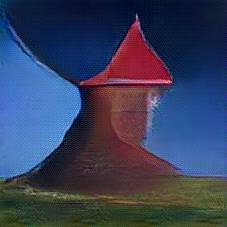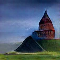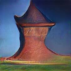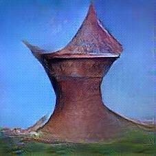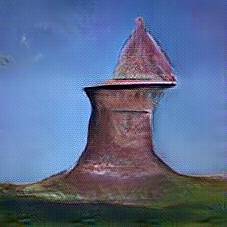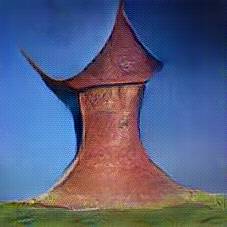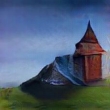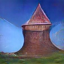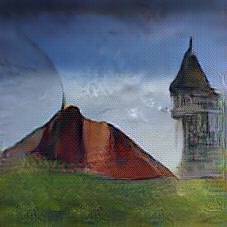 Below are 40 iterations of showing how the neural model learned to represent this class. The visualizations below show the maximally activated representations of what makes Kaunas Castle look like Kaunas Castle