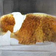 Below are 40 iterations of showing how the neural model learned to represent this class. The visualizations below show the maximally activated representations of what makes Kroket look like Kroket