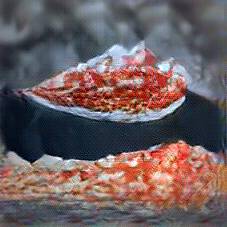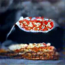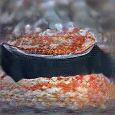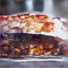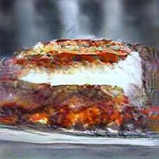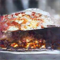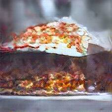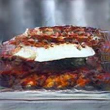 Below are 40 iterations of showing how the neural model learned to represent this class. The visualizations below show the maximally activated representations of what makes Lasagna look like Lasagna