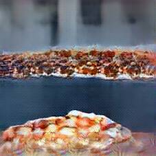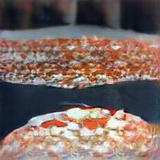 Below are 40 iterations of showing how the neural model learned to represent this class. The visualizations below show the maximally activated representations of what makes Lasagna look like Lasagna