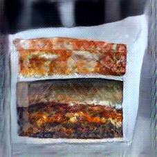 This class was learned from 167 images of Lasagna. The visualizations below show the maximally activated representations of what makes Lasagna look like Lasagna. Each image begins with a randomly-seeded noise image, which leads to a slightly different class representation. Below are 12 activations created from 12 random noise images.