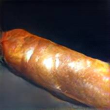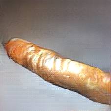 Below are 40 iterations of showing how the neural model learned to represent this class. The visualizations below show the maximally activated representations of what makes Baguette look like Baguette
