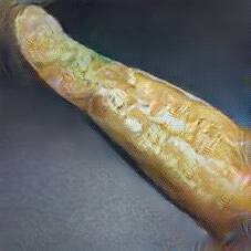 Below are 40 iterations of showing how the neural model learned to represent this class. The visualizations below show the maximally activated representations of what makes Baguette look like Baguette