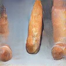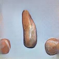 Below are 40 iterations of showing how the neural model learned to represent this class. The visualizations below show the maximally activated representations of what makes Baguette look like Baguette