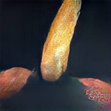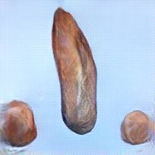 Below are 40 iterations of showing how the neural model learned to represent this class. The visualizations below show the maximally activated representations of what makes Baguette look like Baguette