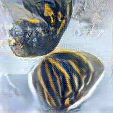 This class was learned from 132 images of Moules Frites. The visualizations below show the maximally activated representations of what makes Moules Frites look like Moules Frites. Each image begins with a randomly-seeded noise image, which leads to a slightly different class representation. Below are 12 activations created from 12 random noise images.