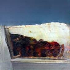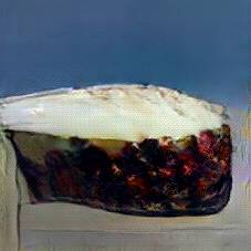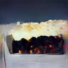 Below are 40 iterations of showing how the neural model learned to represent this class. The visualizations below show the maximally activated representations of what makes Moussaka look like Moussaka