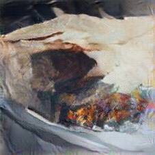 This class was learned from 150 images of Moussaka. The visualizations below show the maximally activated representations of what makes Moussaka look like Moussaka. Each image begins with a randomly-seeded noise image, which leads to a slightly different class representation. Below are 12 activations created from 12 random noise images.