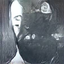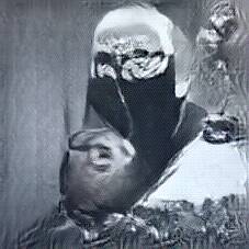 This class was learned from 80 images of Mussolini. The visualizations below show the maximally activated representations of what makes Mussolini look like Mussolini. Each image begins with a randomly-seeded noise image, which leads to a slightly different class representation. Below are 12 activations created from 12 random noise images.