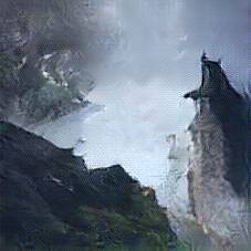 Below are 40 iterations of showing how the neural model learned to represent this class. The visualizations below show the maximally activated representations of what makes Neuschwanstein look like Neuschwanstein