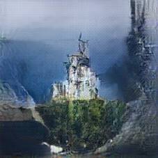 Below are 40 iterations of showing how the neural model learned to represent this class. The visualizations below show the maximally activated representations of what makes Neuschwanstein look like Neuschwanstein