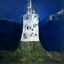 Below are 40 iterations of showing how the neural model learned to represent this class. The visualizations below show the maximally activated representations of what makes Neuschwanstein look like Neuschwanstein